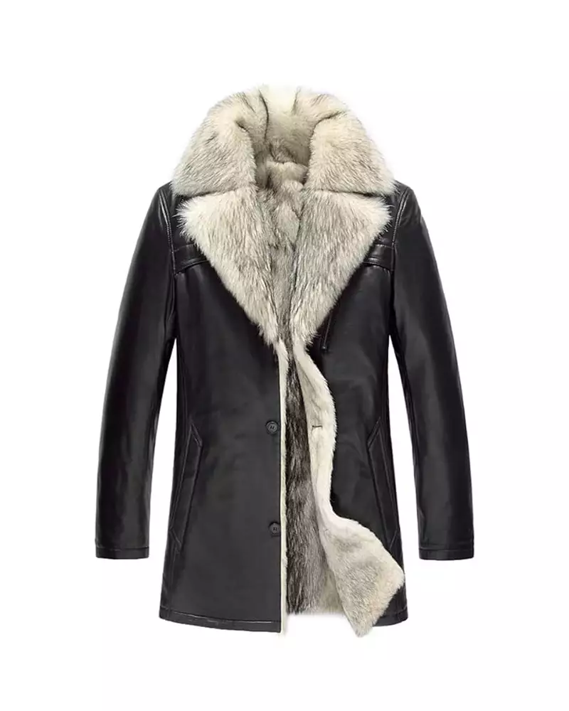Inside, a luxurious shearling lining offers exceptional warmth and softness. The thick, plush lining provides insulation without compromising mobility or comfort, allowing the wearer to move freely while staying protected from cold temperatures. The combination of leather and shearling makes this jacket both stylish and practical, offering a refined appearance that is also functional for daily wear. Reinforced stitching and durable seams ensure the jacket remains strong and long-lasting, making it a piece that can be enjoyed for years.