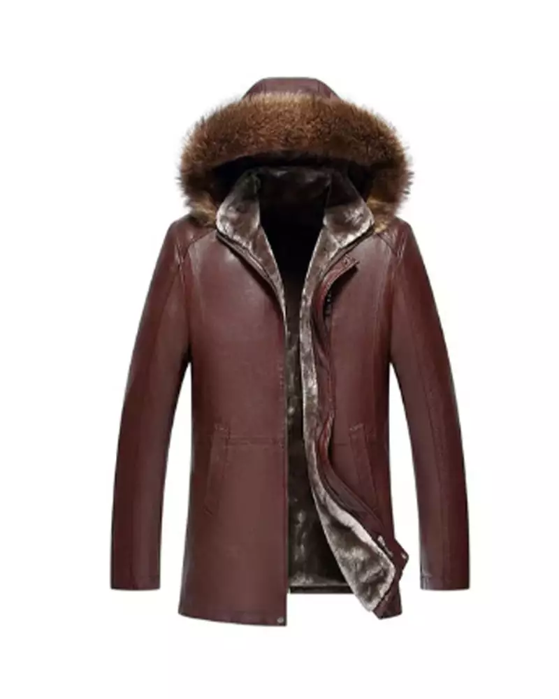 Premium Genuine Leather Mink Fur Hooded Coat – Men’s Collection