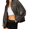 Classic Vava Washed Oversized Leather Bomber Jacket